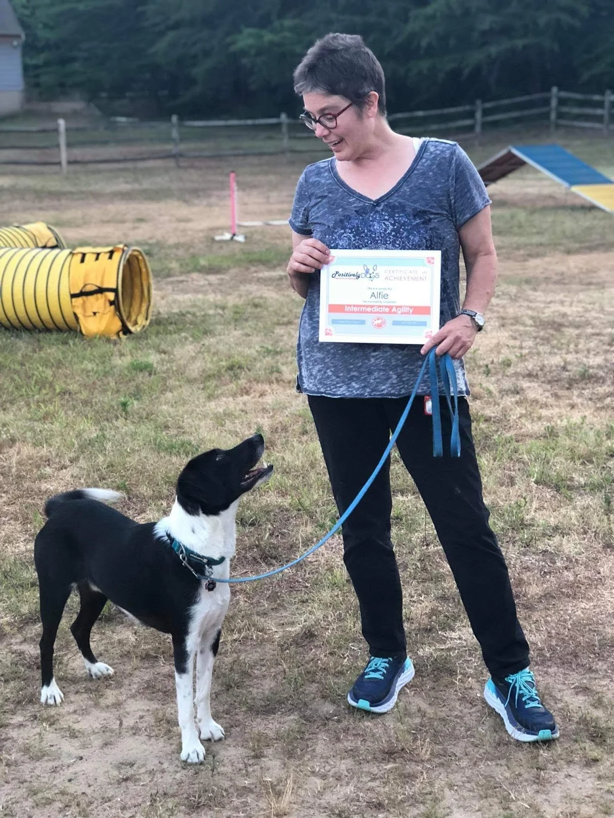 Alexis is certified as a CPDT-KA (Certified Professional Dog Trainer – Knowledge Assessed) and as a PMCT (Pat Miller Certified Trainer) in addition to being a professional member of Pet Professional Guild (PPG), the Association of Professional Dog Trainers (APDT), and is certified in Pet First Aid and CPR. She is also an AKC Canine Good Citizen Evaluator. As a dedicated trainer who practices and promotes science based positive reinforcement training, Alexis is dedicated to her ongoing continuing education and development.